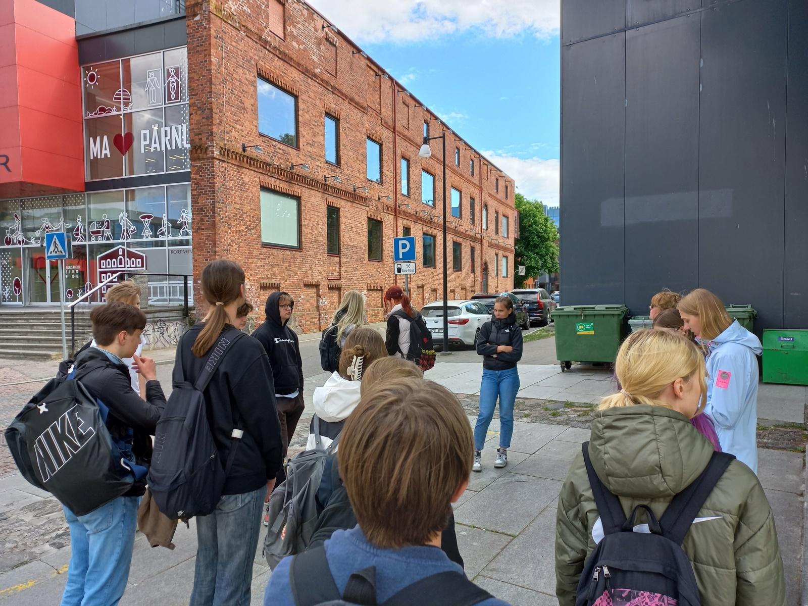 Arhitektuuri valikaine 10. klassi õpilased kohtusid 29. mail Muinsuskaitse Pärnumaa nõuniku, Terje Luurega ja ühiselt tutvuti linnaruumis kaheksa erineva hoonega. Pärnus on rohkesti vana hoonestust, mille hulgast T. Luure valis vaatluseks erinevatest ajajärkudest 8 näidet ning andis õpilaste endi poolt loetule ja räägitule juurde detailide ja kujunemisega seotud teavet.