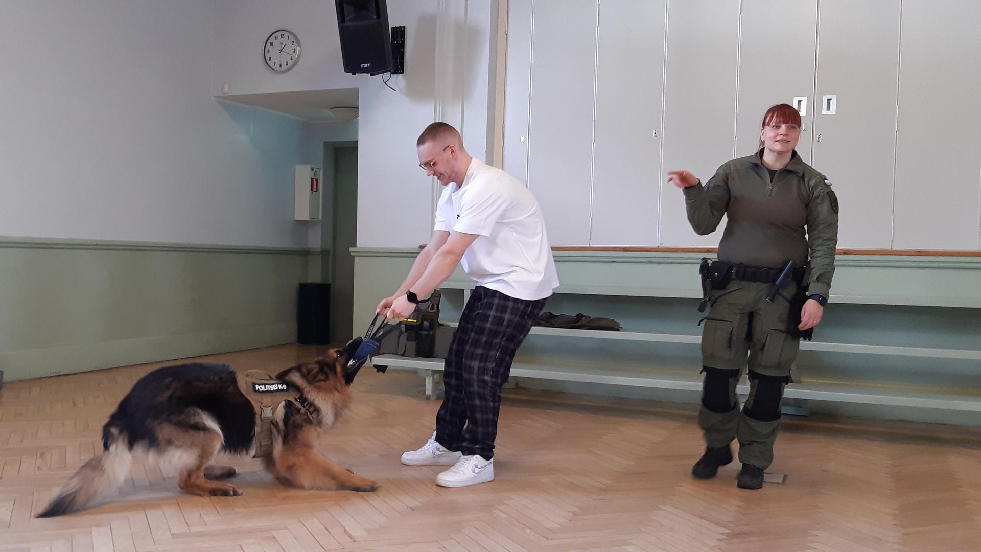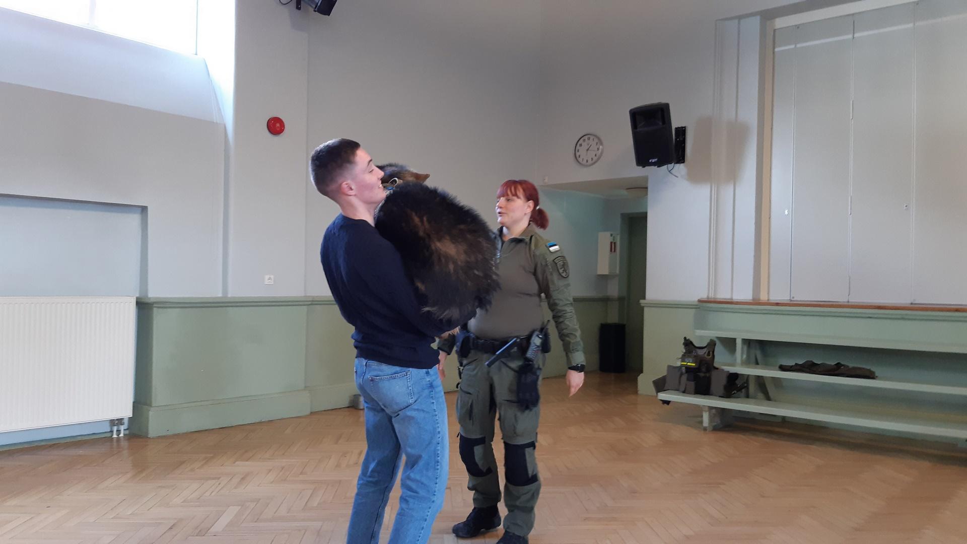 Oma tööd tutvustasid koerajuhid Marje Piiroja ja Birgit Sang koerte Notchi ja Jackiga. Väga huvitavas loengus räägiti, millised koerad sobivad teenistuskoerteks, millisest kennelist neid võetakse, mis on nende peamised tööülesanded, mis saab loomast, siis kui ta teenistusaeg lõppeb jpm. Mängiti läbi inimese otsing, eseme otsing ning „väike“ Jacki võeti isegi sülle. Oli väga huvitav, õpetlik ja meeleolukas loeng. Loeng toimus G2.b klassi õpilase Lorette Partsi aastatöö raames.