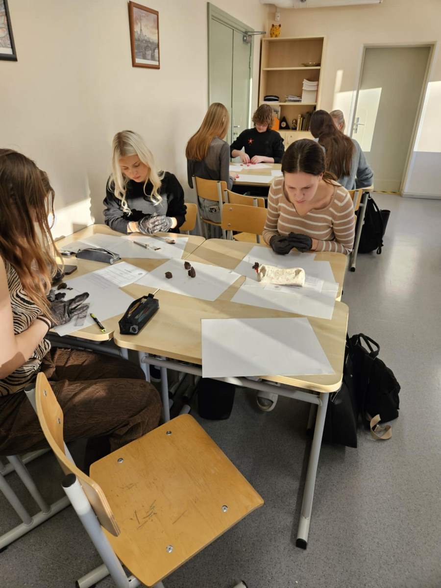 Marika Ristmäe kunstitundide raames vaatasid õpilased näitust ning said ülesandeks luua oma