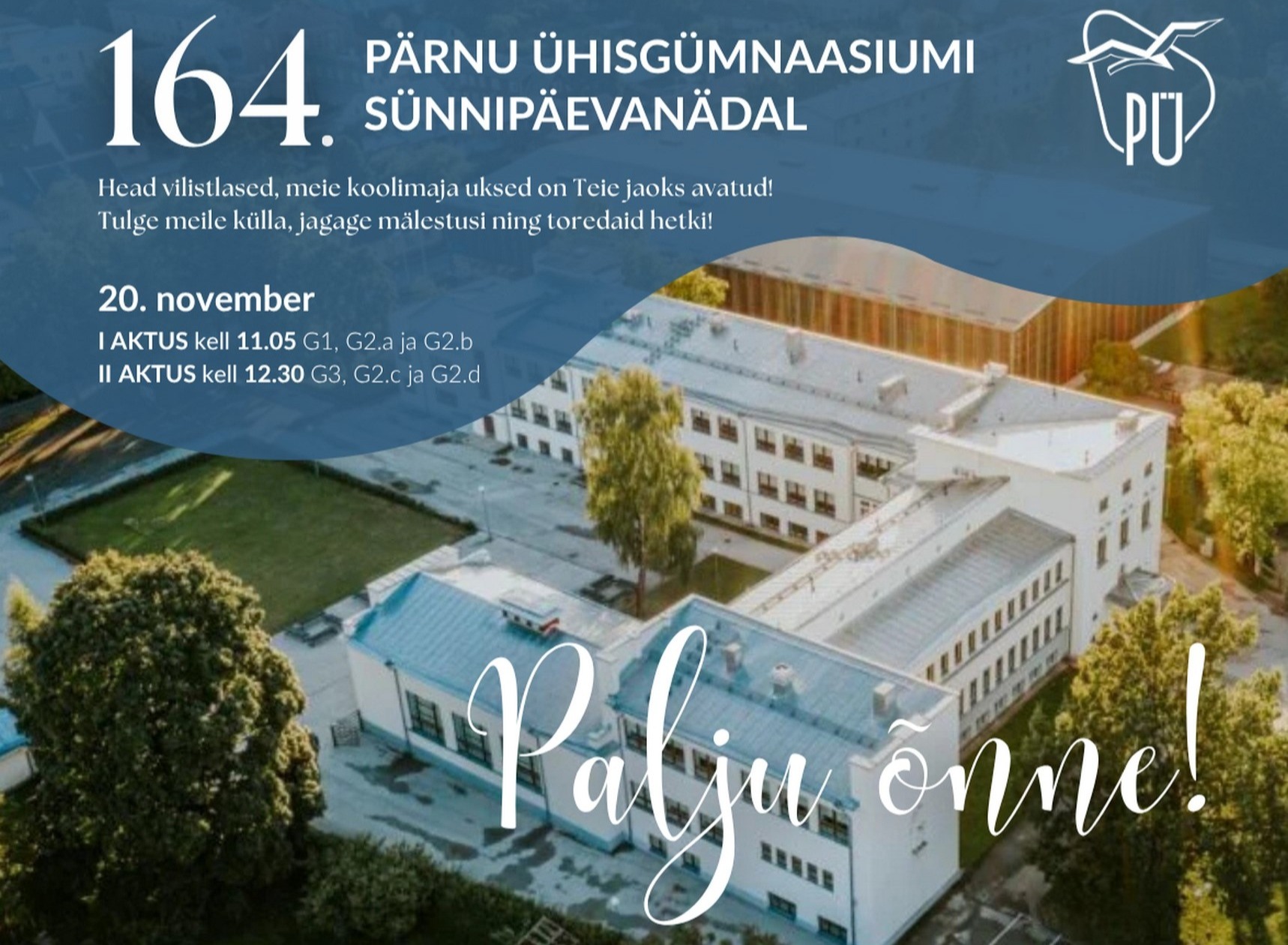 Sel neljapäeval, 20. novembril tähistab Pärnu Ühisgümnaasium 164. sünnipäeva!