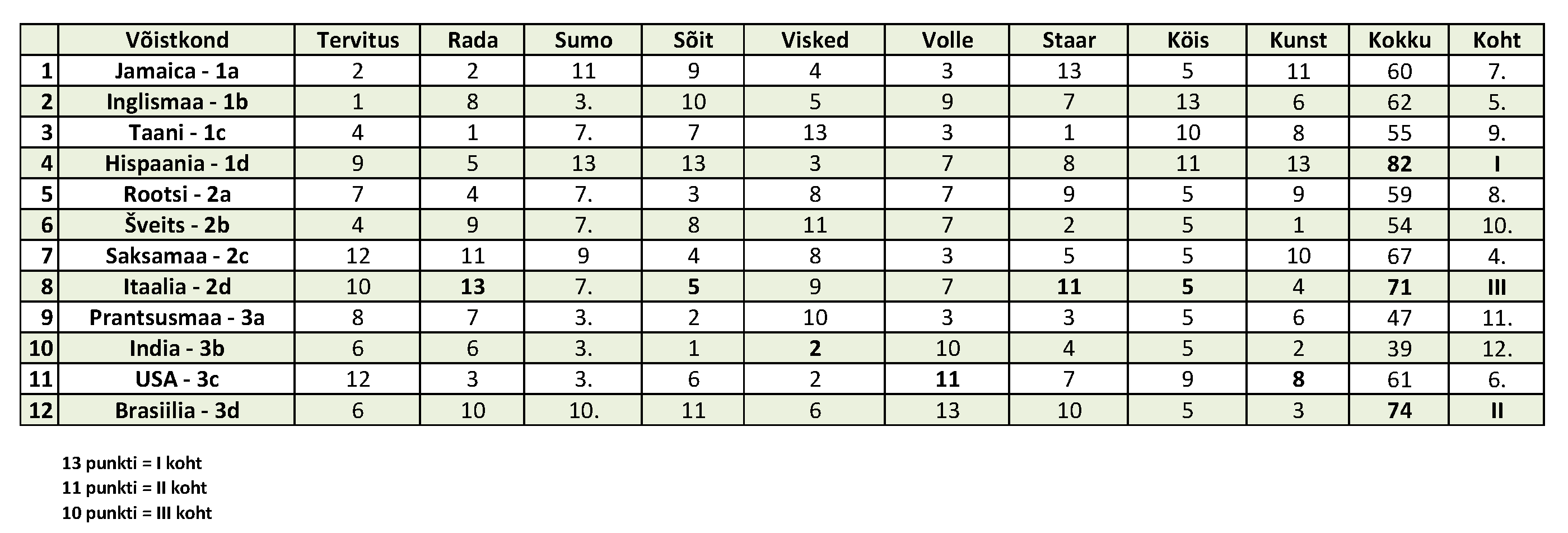 | G1.d Rootsi | G2.d Jamaica | G3.d Saksamaa |