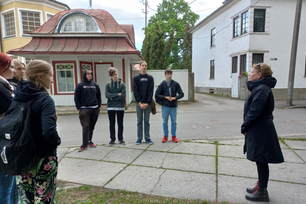 Arhitektuuri valikaine 10. klassi õpilased kohtusid 29. mail Muinsuskaitse Pärnumaa nõuniku, Terje Luurega ja ühiselt tutvuti linnaruumis kaheksa erineva hoonega. Pärnus on rohkesti vana hoonestust, mille hulgast T. Luure valis vaatluseks erinevatest ajajärkudest 8 näidet ning andis õpilaste endi poolt loetule ja räägitule juurde detailide ja kujunemisega seotud teavet.