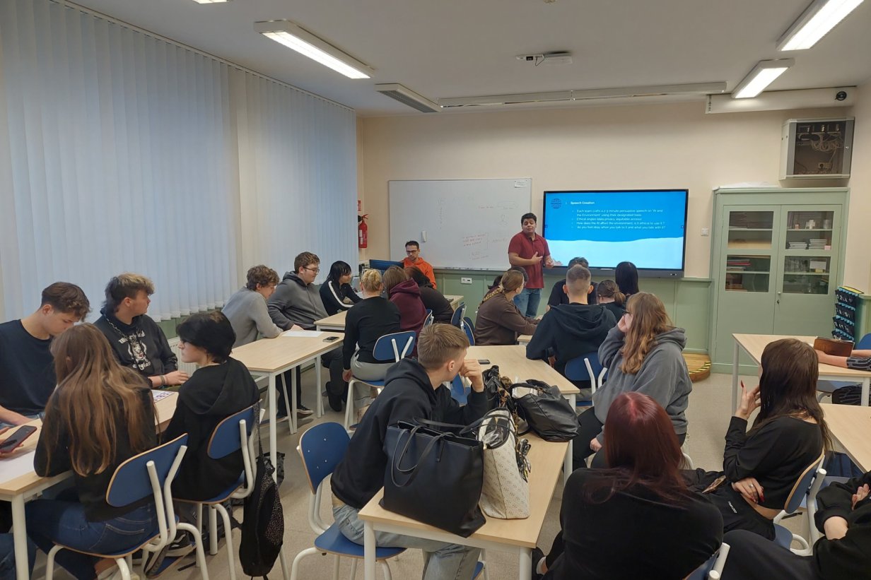 G 3.a ja G 3.b klassid osalesid 9. detsembril MTÜ Mondo Maailmakooli ingliskeelsetes töötubades, mida viisid läbi Mondo vabatahtlikud Dan ja Florin. Ühes töötoas arutleti tehisaru eetiliste aspektide ja keskkonnamõju üle ning teises mängiti läbi seaduseelnõu paranduste arutelu parlamendis.
