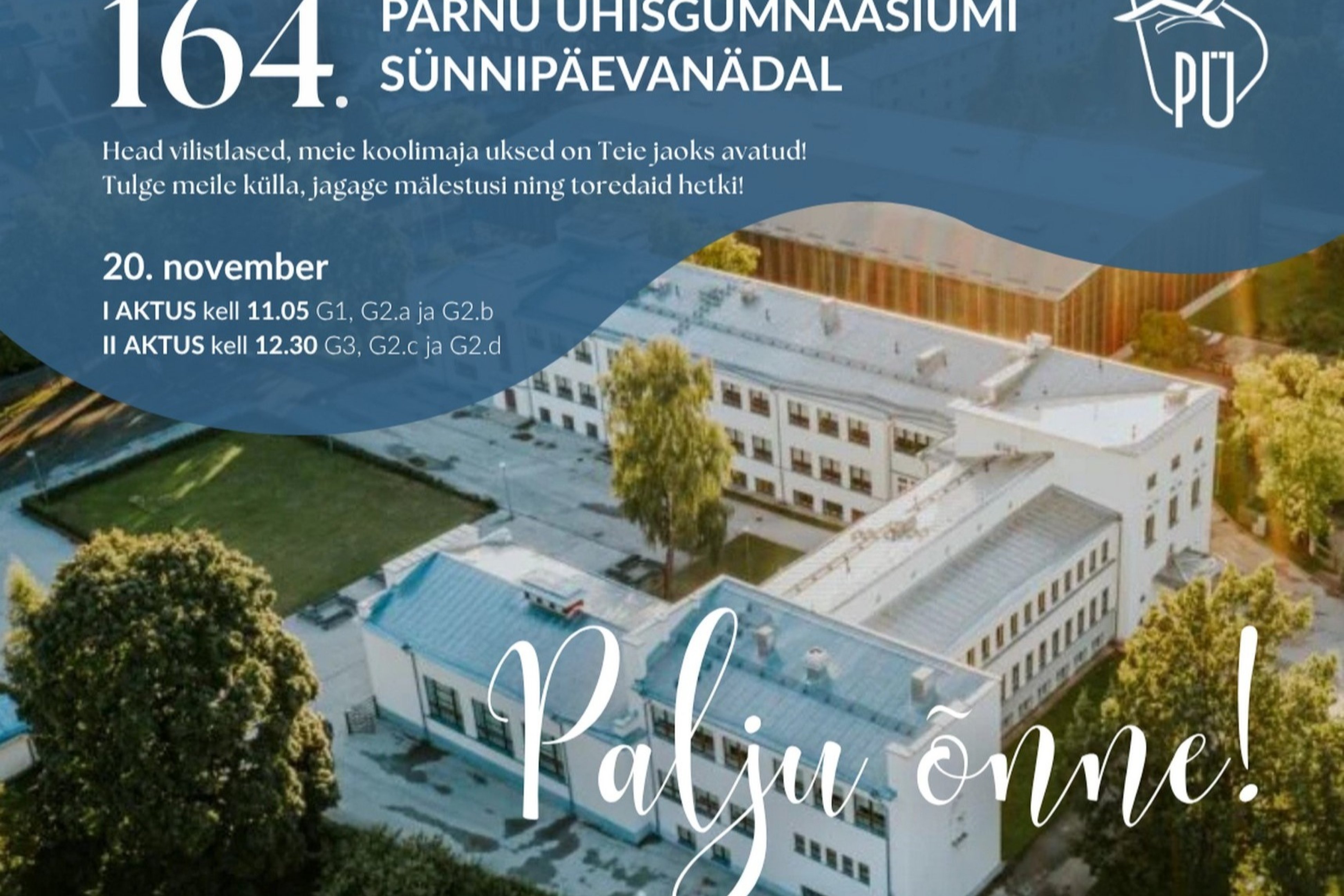 Sel neljapäeval, 20. novembril tähistab Pärnu Ühisgümnaasium 164. sünnipäeva!