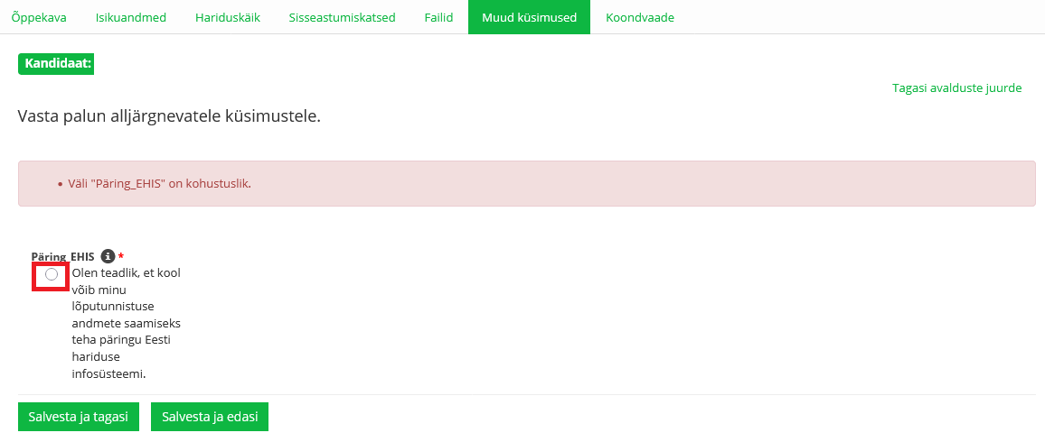 Palun vali kindlasti kandideerimise aluseks olev haridus tehes linnuke vastavasse kasti.