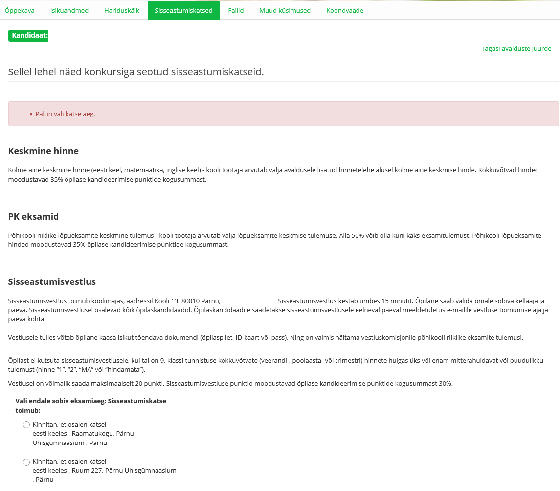 7. Sisseastumisvestluse info.